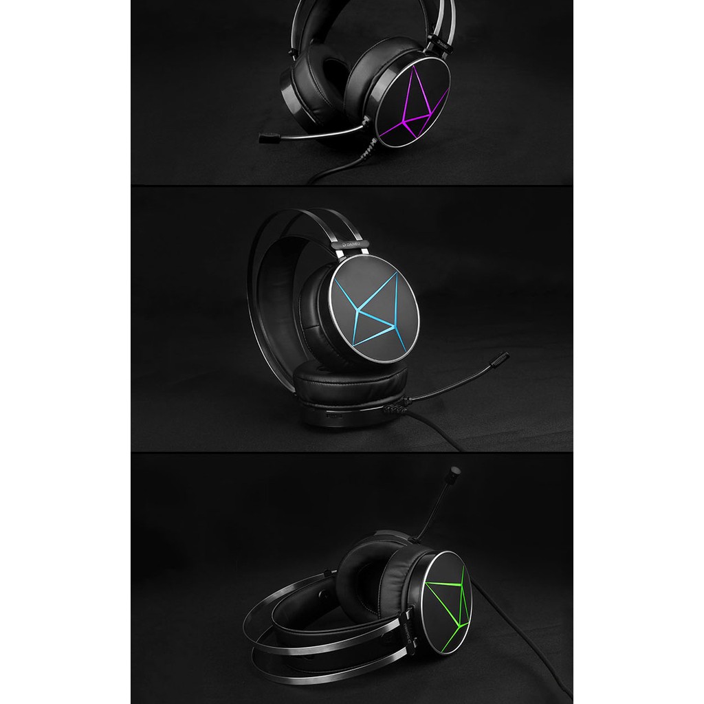 Tai nghe gaming dareu eh722s 71 được thiết kế theo hình dáng kim cương độc đáo. 6 miếng cắt kết hợp với các màu đèn led khác nhau tạo ra hiệu ứng kim cương độc đáo và sang trọng cho tai nghe. Tai nghe dareu eh722s.