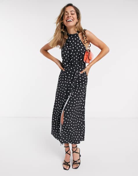Коричневое свободное платье в горошек New Look - Коричневый New ...