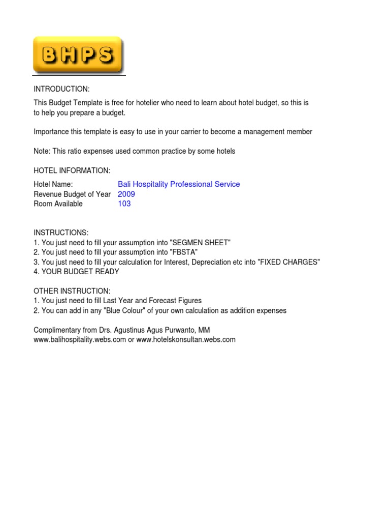 Hotel Budgeting Excel Template Eloquens